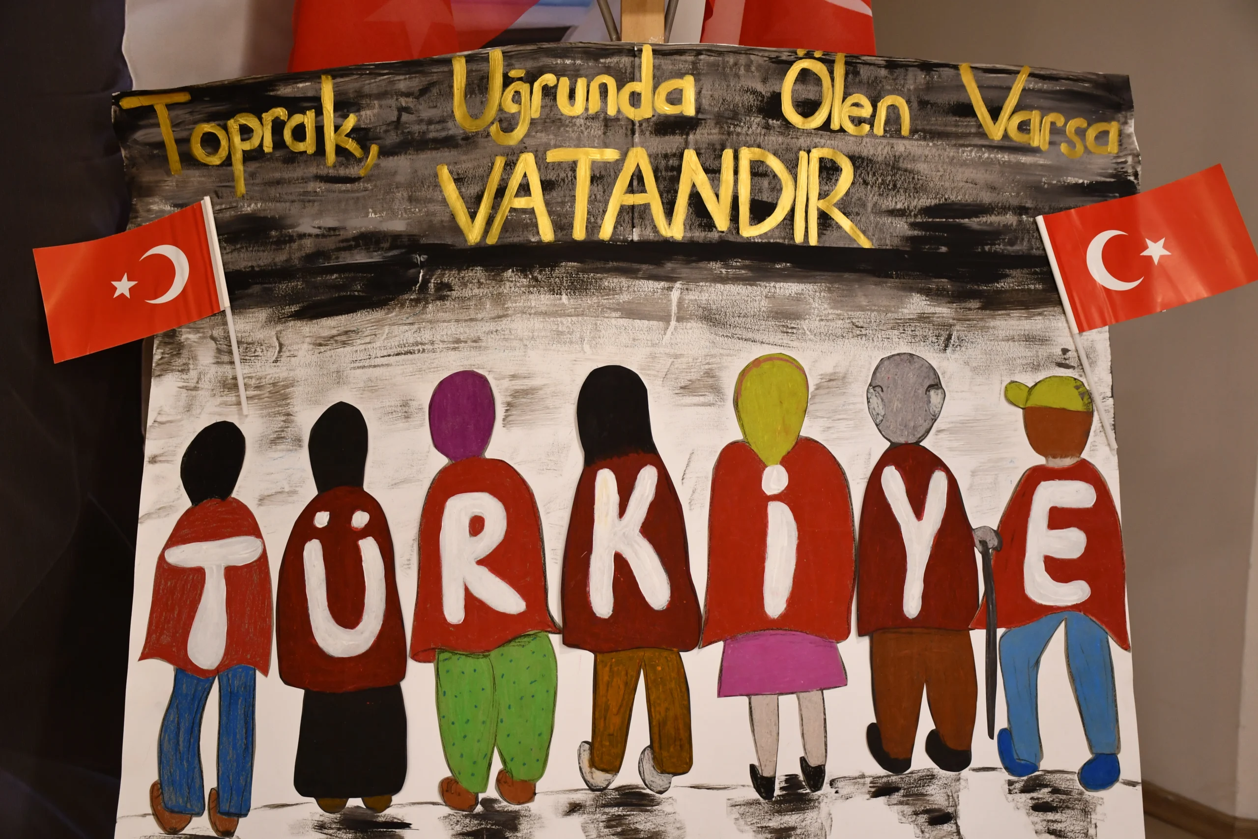 Konuşmaların ardından İl Başkanı Dağlı, Akgöz ve diğer katılımcılar, çocukların hazırladığı resimleri tek tek inceledi. Duygusal anların yaşandığı etkinlikte, sanat yoluyla ifade edilen vatan sevgisi ve minnet duygusu ziyaretçilerin beğenisini topladı.
