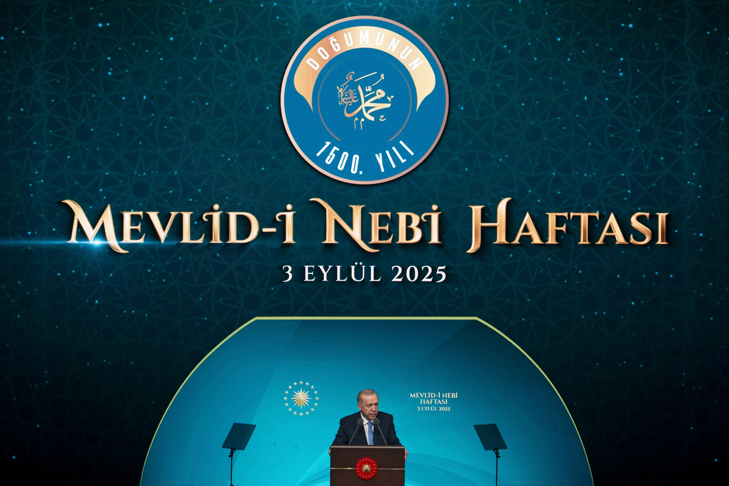 Erdoğan, Hz. Muhammed’in hayatının bütün insanlık için örnek olduğunu belirterek, onun öğretilerinin günümüz sorunlarına da çözüm sunduğunu ifade etti. Mevlid-i Nebi Haftası’nın bu yılki temasının “Peygamberimiz ve Aile Ahlakı” olduğunu hatırlatan Cumhurbaşkanı, bu çerçevede düzenlenecek etkinliklerin toplumsal bilinç açısından önemli olduğunu söyledi.