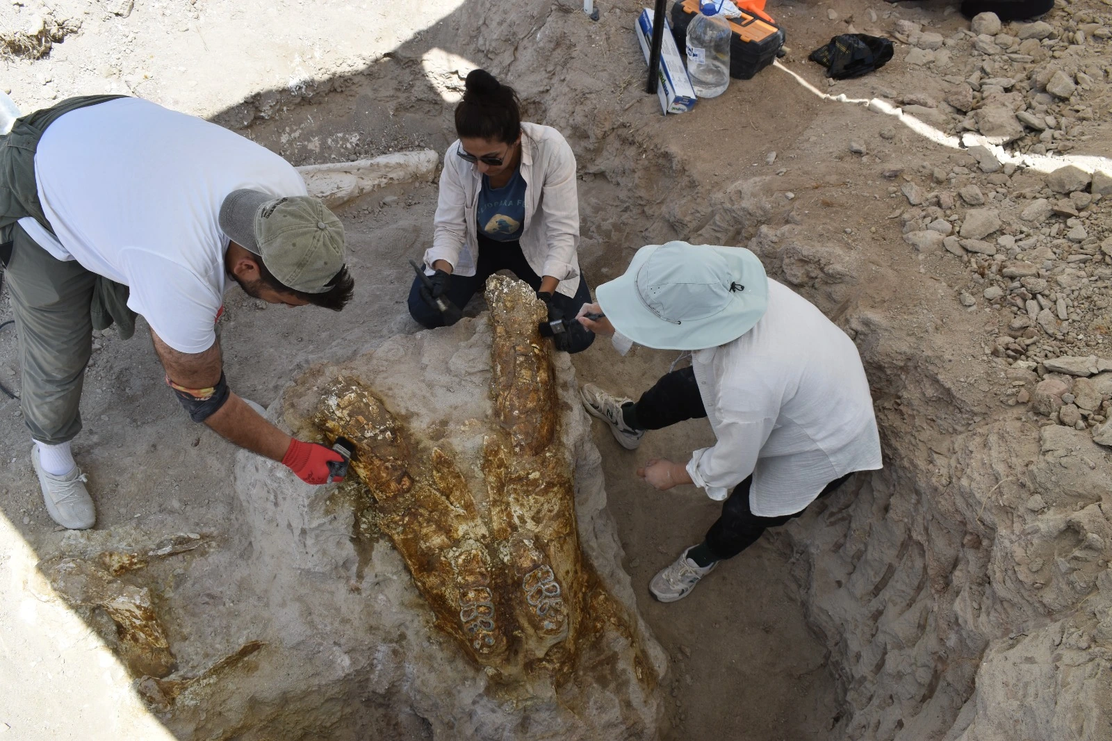 “Kazıların başladığı 2018’den bu yana 2 kafatası bulabilmiştik ama sadece bu yıl bir sezonda 3 kafatası tespit ettik. Birinin yanında alt çenesi de vardı. Defans diye tabir edilen uzun dişlerde bozulmalar olsa da kafataslarının çoğu tama yakın.”